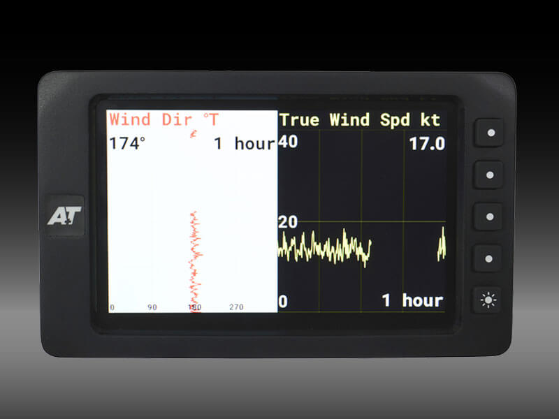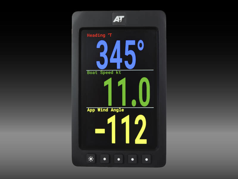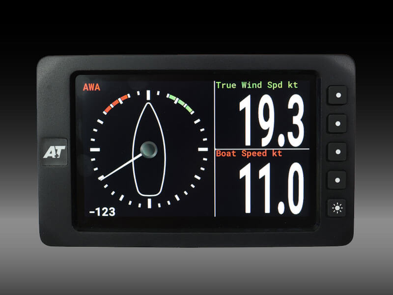 A+T analogue displays are available in AWS, AWA360, AWA Magnified Wind, TWA360, TWD, TWs, Rudder Angle, Boat Speed, Depth and Tachometer.